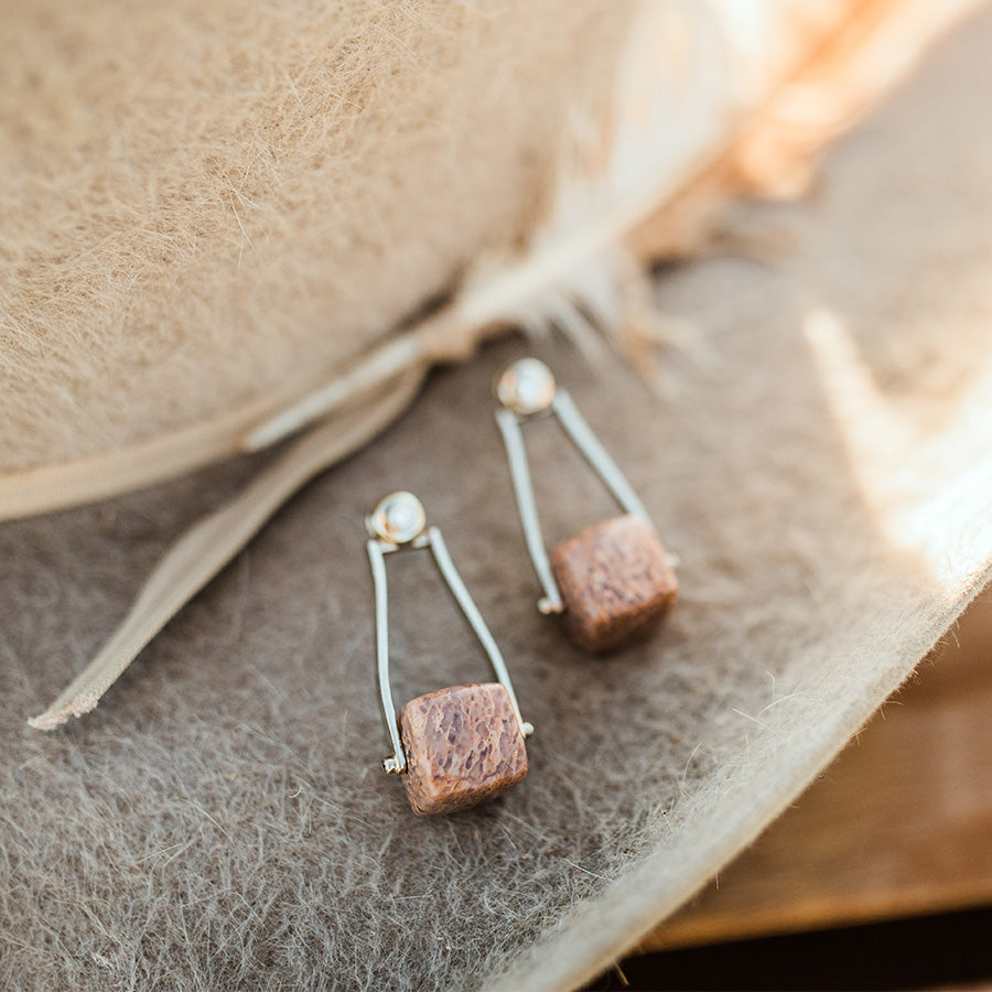 Fossilized Dinosaur Bone Cube Earrings