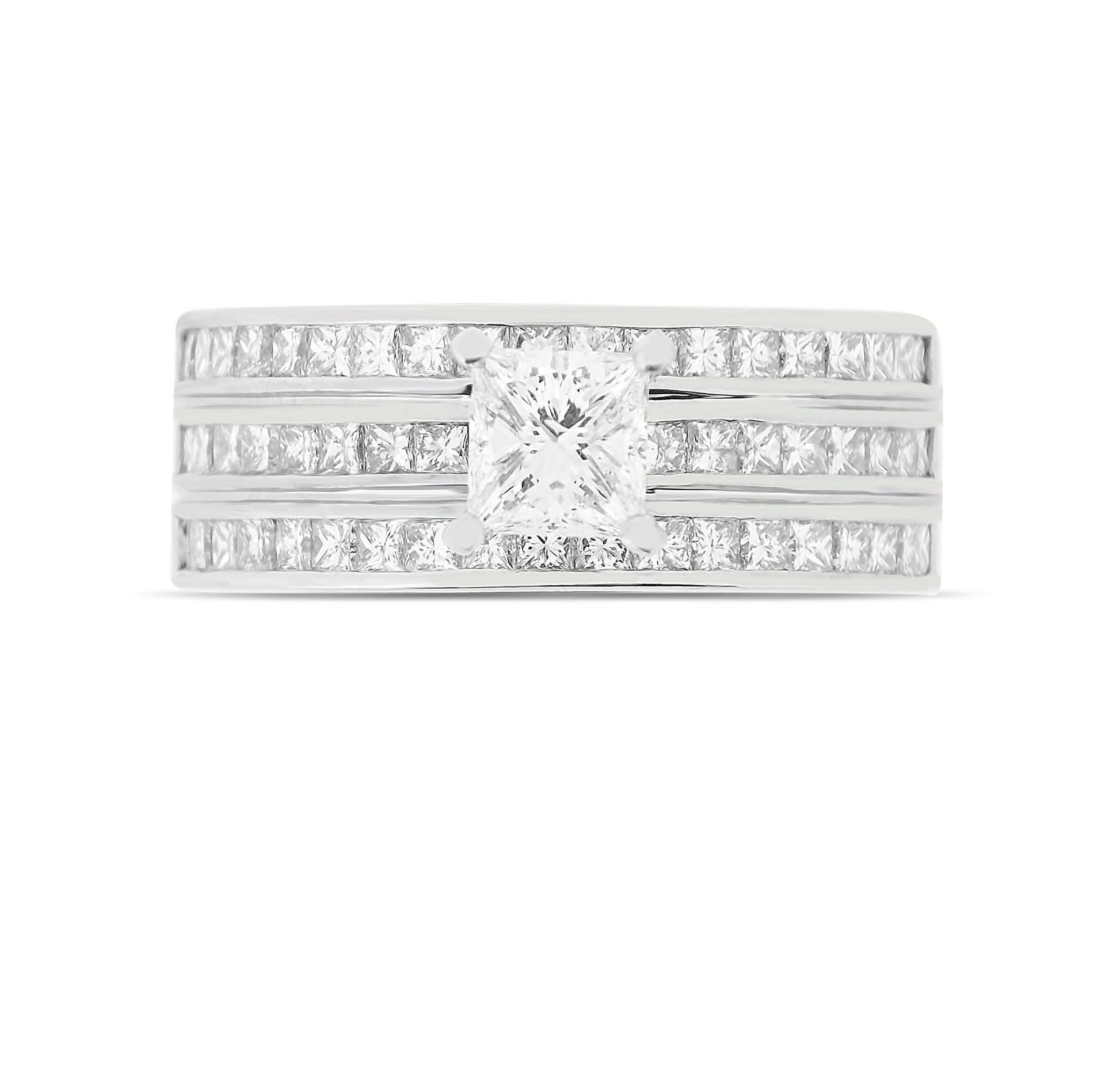 This wide diamond ring is custom made with channel set princess cut diamonds into triple bands. The client’s princess cut diamond is set in such a way that we can update at anytime. This ring has lot’s of bling and looks fantastic on my client!