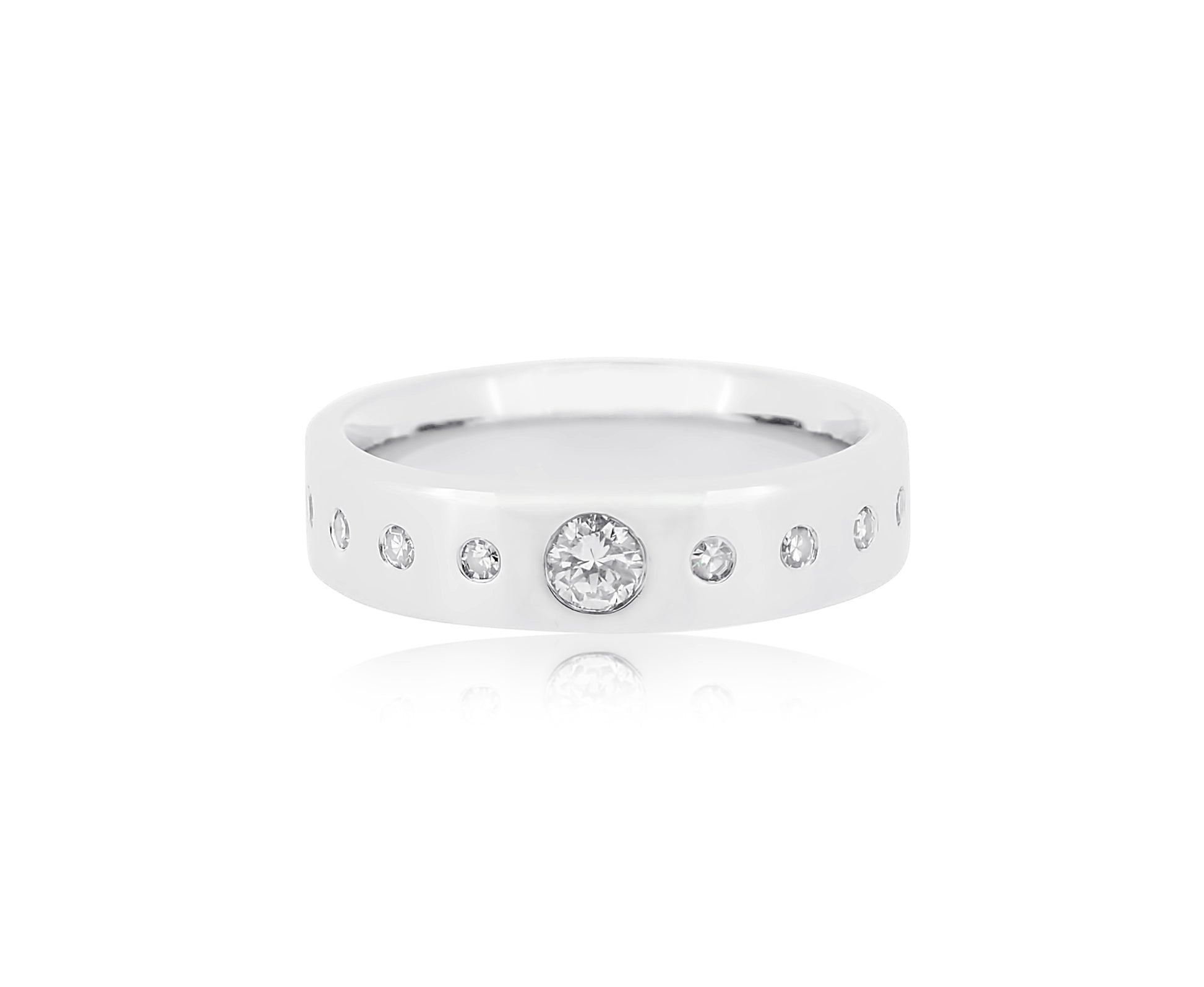 Custom made band with flush set diamonds. This client had her late mother's diamonds and wanted them to be set into a band to be able to wear everyday as a stand alone or as a stacking ring. Fit is perfect and comfortable!