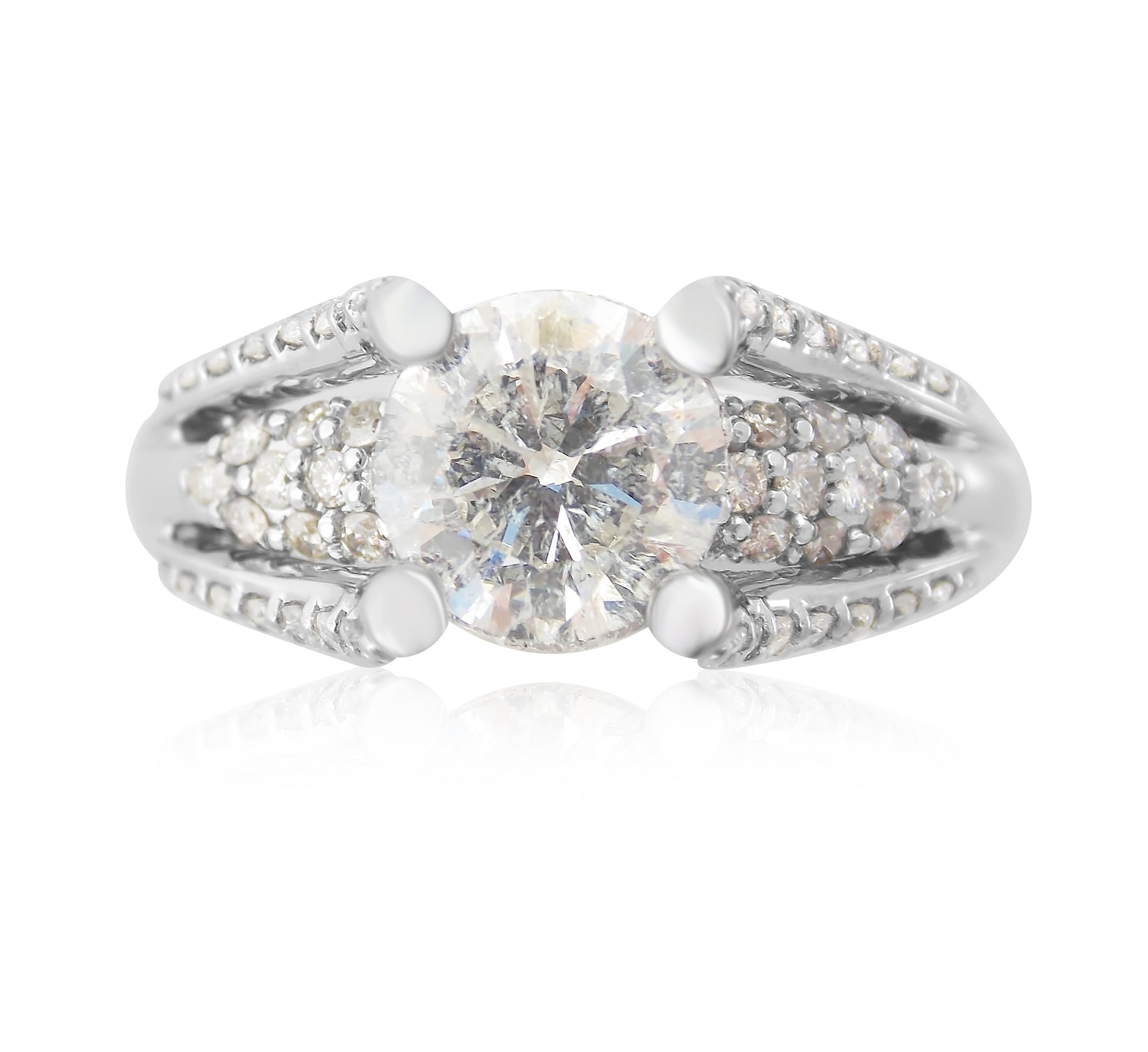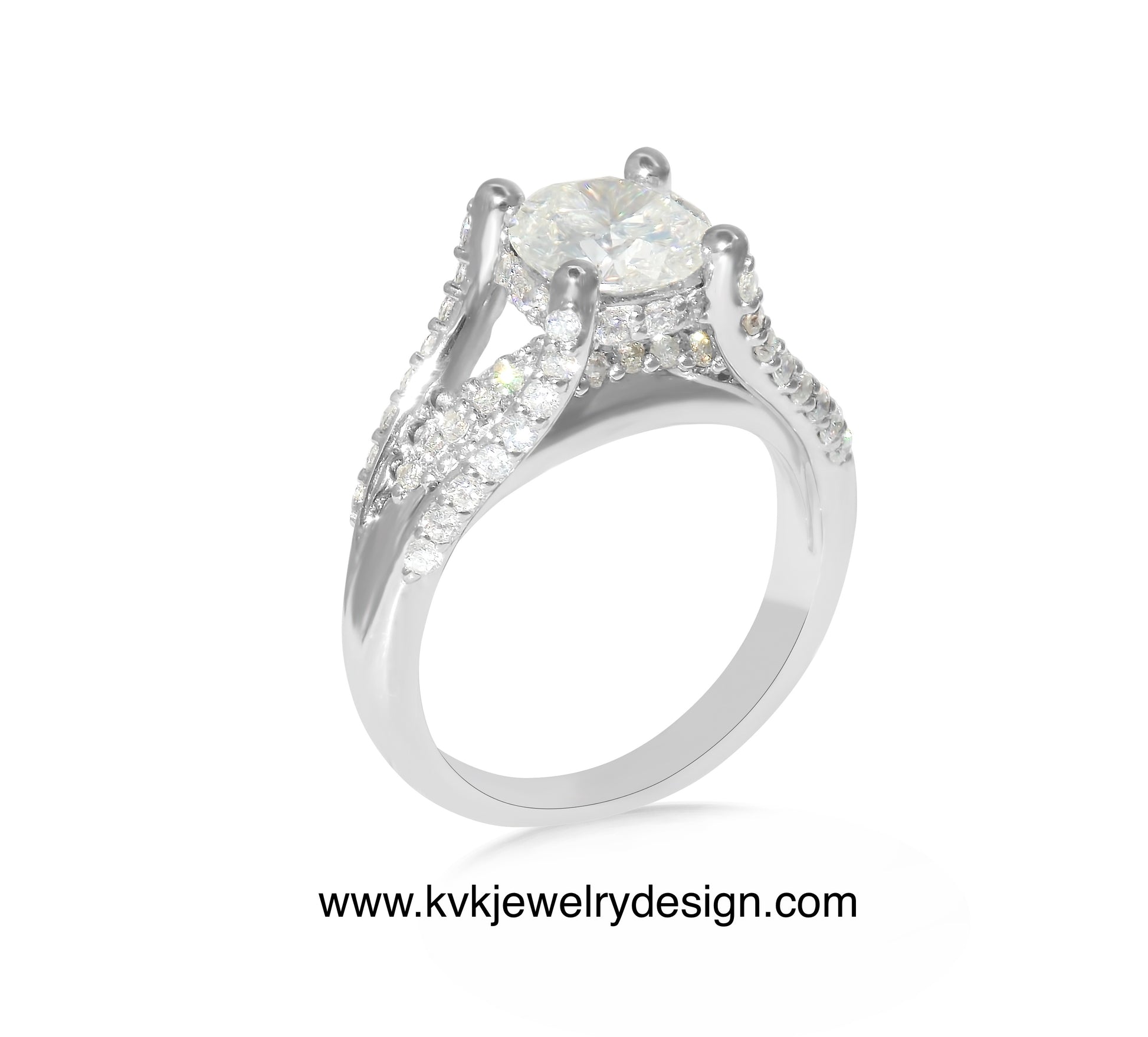 This beautiful ring is a timeless classic design. The accent side diamonds bring the eye up to the center diamond. It was a joy for the artist, as the client is from her hometown in western Nebraska.
