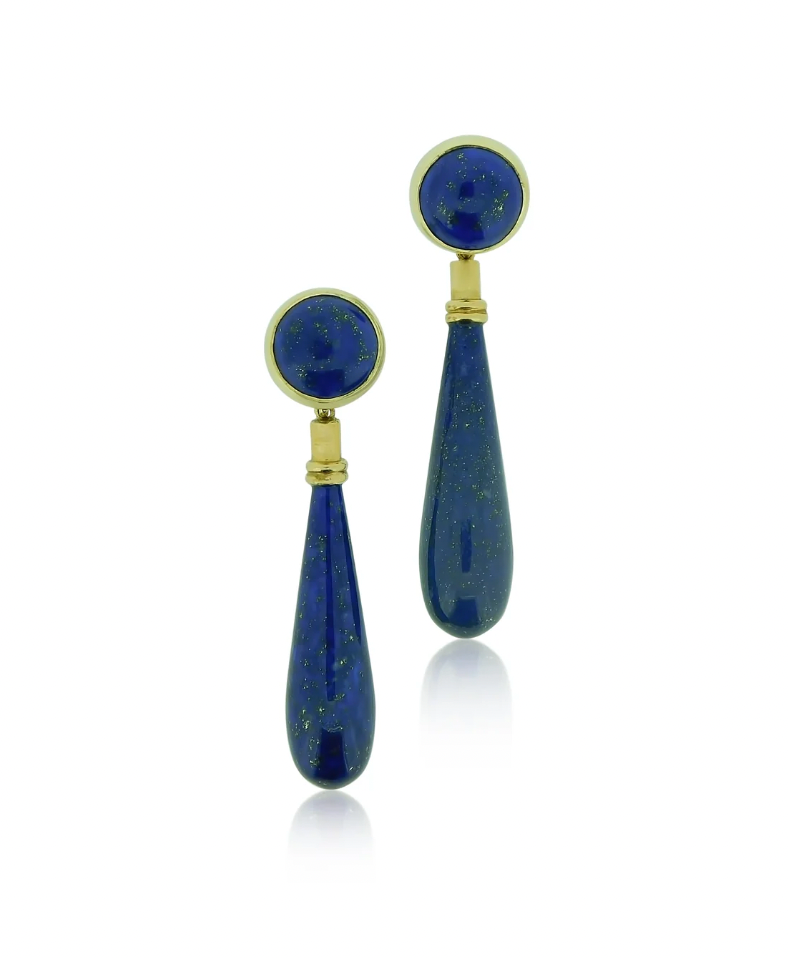 12mm round cabochon lapis tops with hand fabricated 14kt yellow gold bezel
