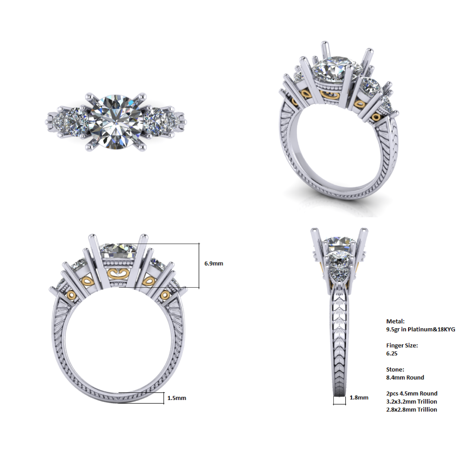 This dear client loved her current ring. She called it her sacred cow! But after almost 30 years, it was in need of repair. So, at KVK we were able to exactly duplicate the original ring, making it stronger and heavier. This platinum beauty will last 30+ years and then on to the next generation!