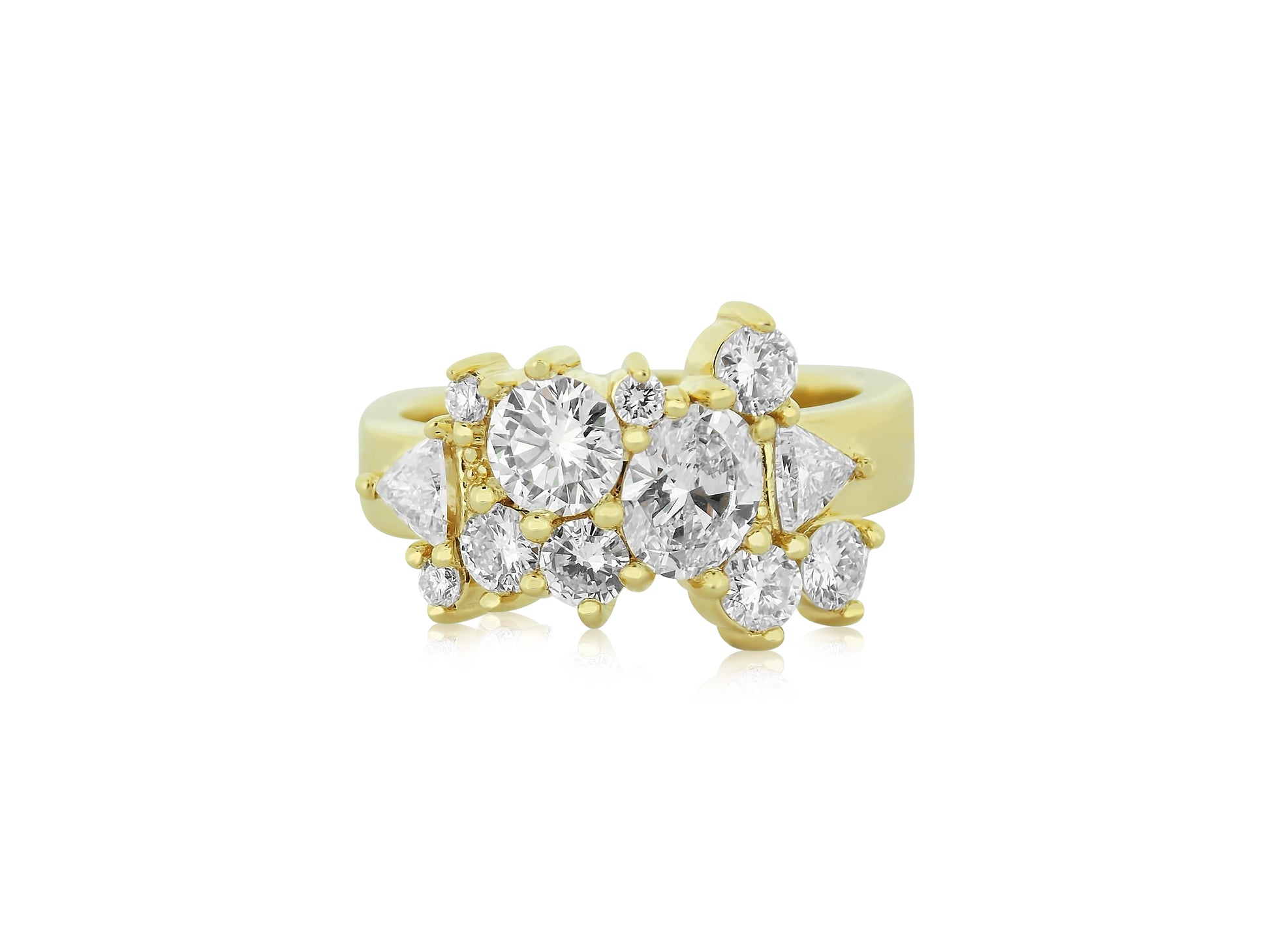 This was a creative ring to design using the client’s diamonds plus a few extra. We took careful consideration on how the diamonds would best lay in a mindful, yet scattered pattern. We designed the ring with the square shank so it doesn’t turn on her hand.