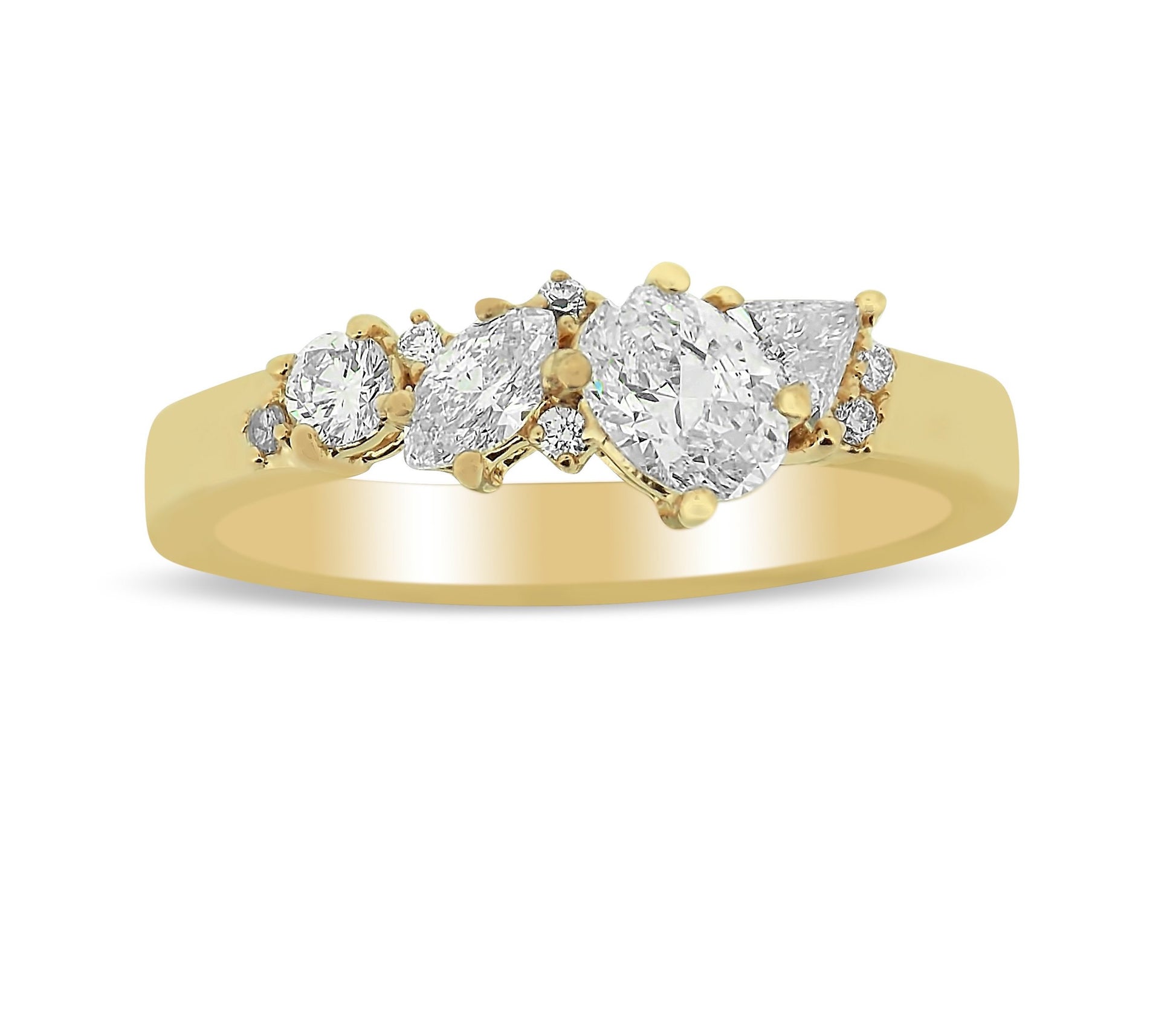 Custom designed diamond engagement ring. This couple are both engineers and wanted structure yet with a freedom that the scattered diamond style provided. Each diamond was hand selected with thought on how the shapes and size play off of each other. With the CAD’s we were able to show different options.