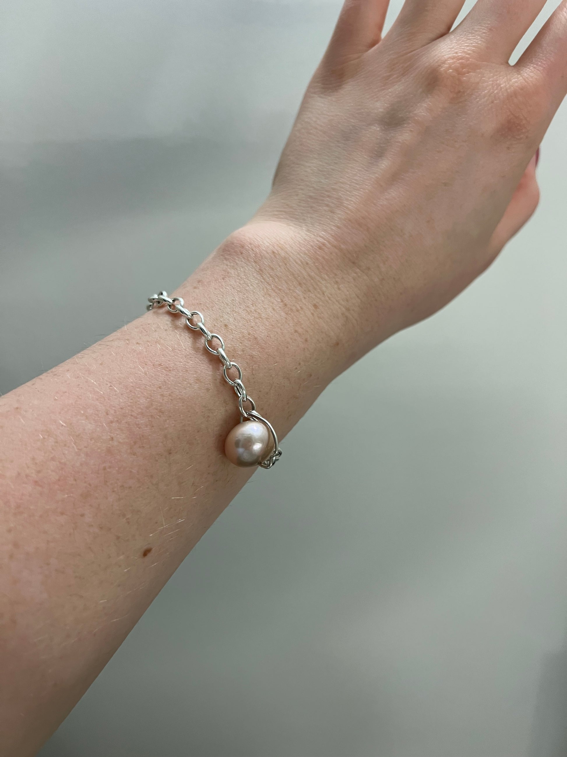 Sterling Silver Link Bracelet with Pearl